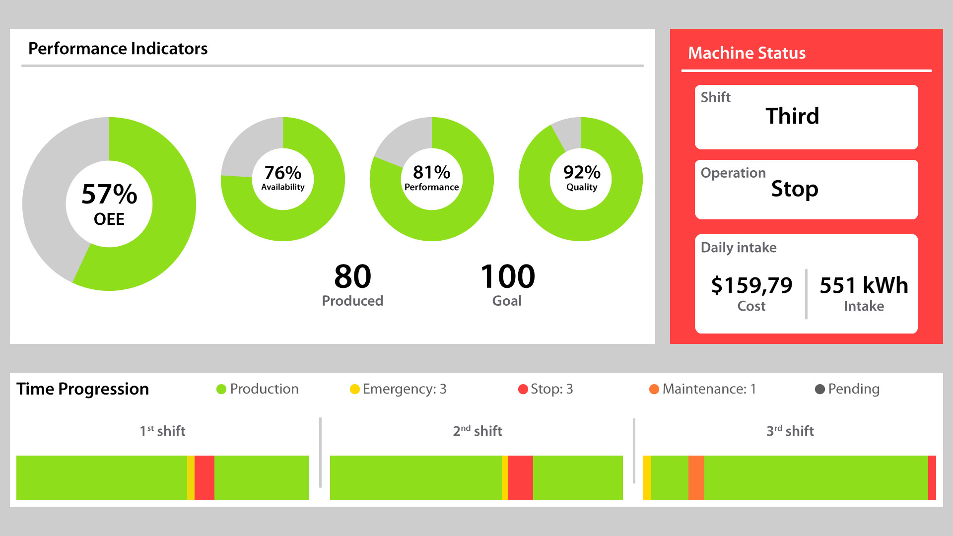 With this information it is possible to determinate how much of the available time was effectively spent in the manufacture of the parts. This estimation helps to translate the business performance index, measuring its production capacity. The feature also helps to reduce waste and increase the performance of the machine, improving operation.